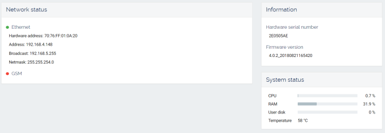 La configuration des réseaux Ethernet et GSM est réalisée dans l'onglet Network. Elle permet :